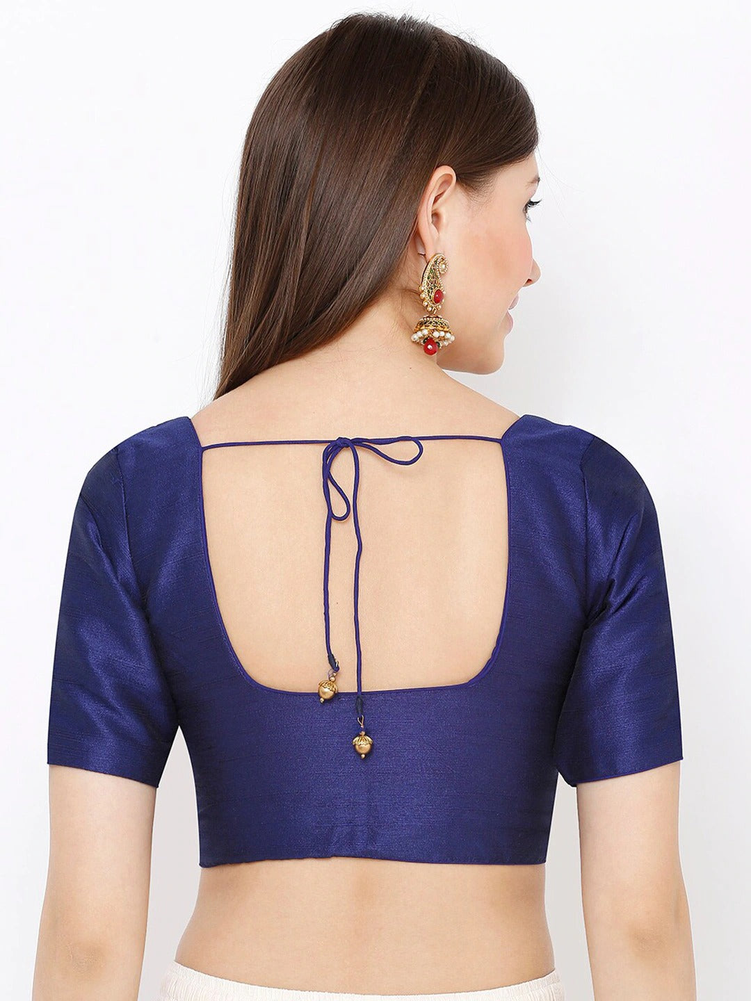 Blue Scoop Neck Elbow Sleeve Readymade Saree Blouse