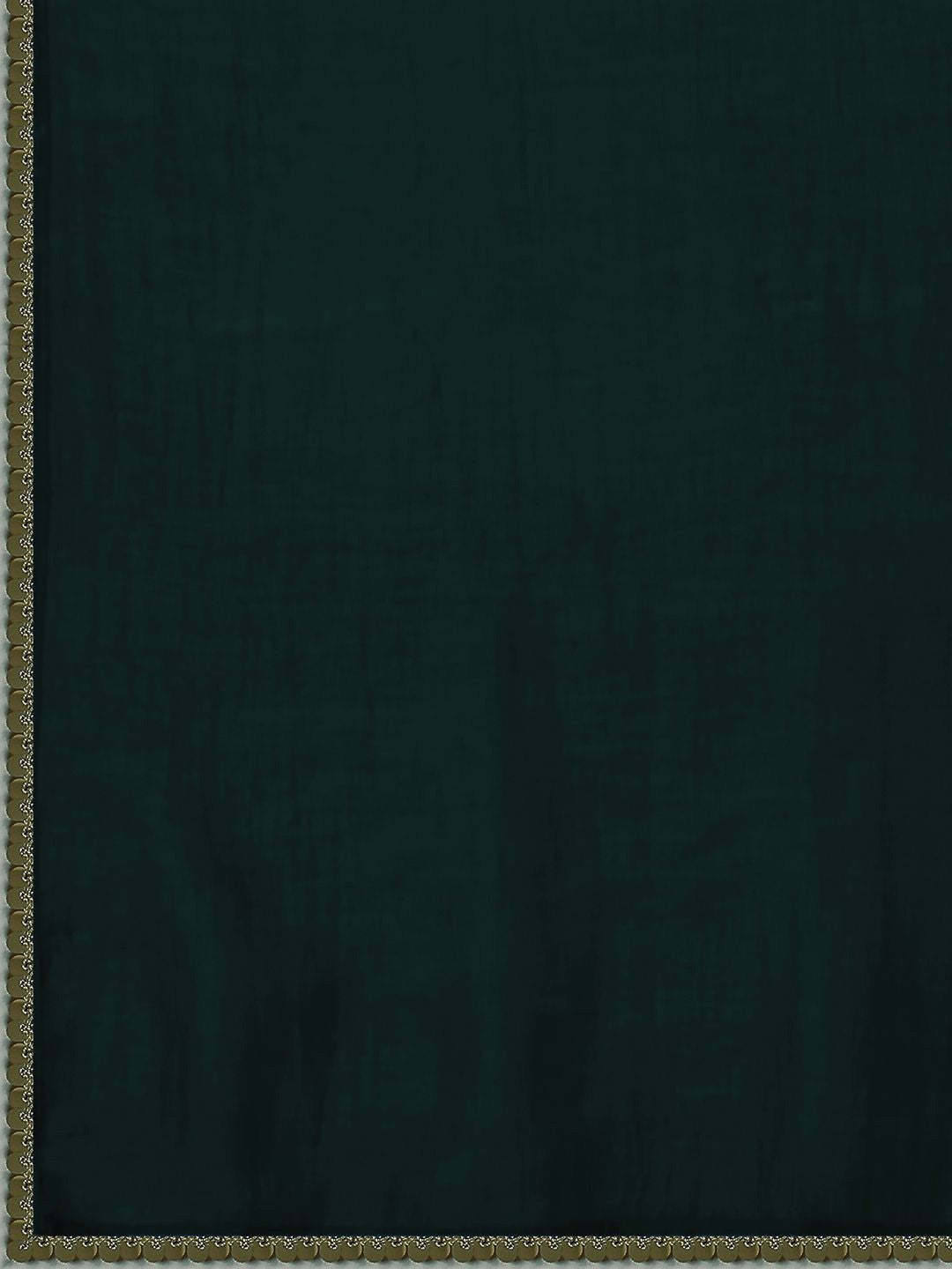 Grace every special occasion with this elegant dark green georgette lehenga set, designed for the modern woman who cherishes classic style. The bustier-style blouse features exquisite leaf motif embroidery in a soft golden thread, creating a captivating contrast. The flowing dark green georgette lehenga skirt offers beautiful movement and a flattering fit. A matching dupatta with a delicate golden sequin border completes this luxurious ensemble, making it ideal for weddings, festive celebrations, and elegant parties.
