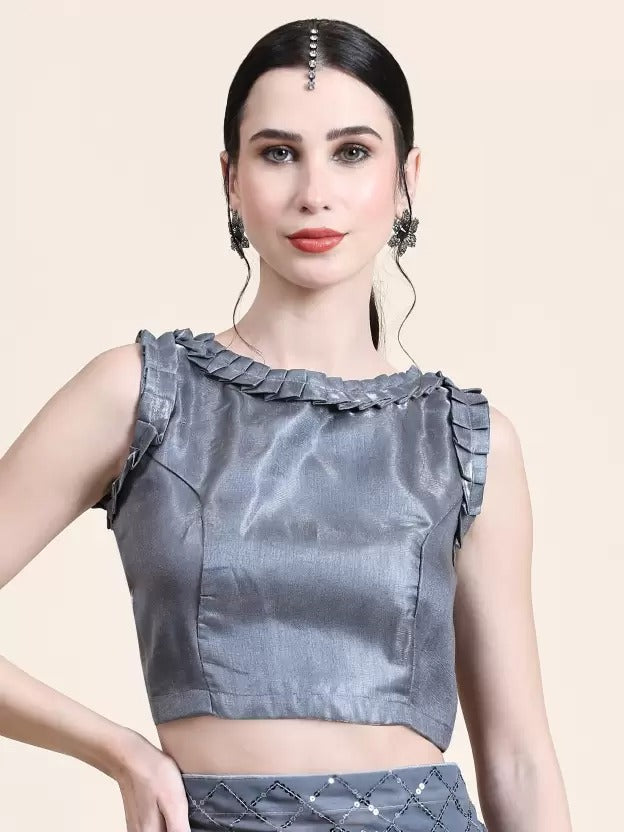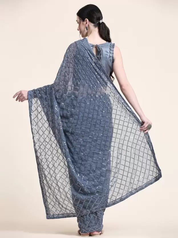 Turn heads with this bold and glamorous Grey Sequin Saree. Crafted on soft Georgette fabric, it features all-over geometric diamond embroidery with delicate sequin detailing that adds the perfect amount of sparkle.