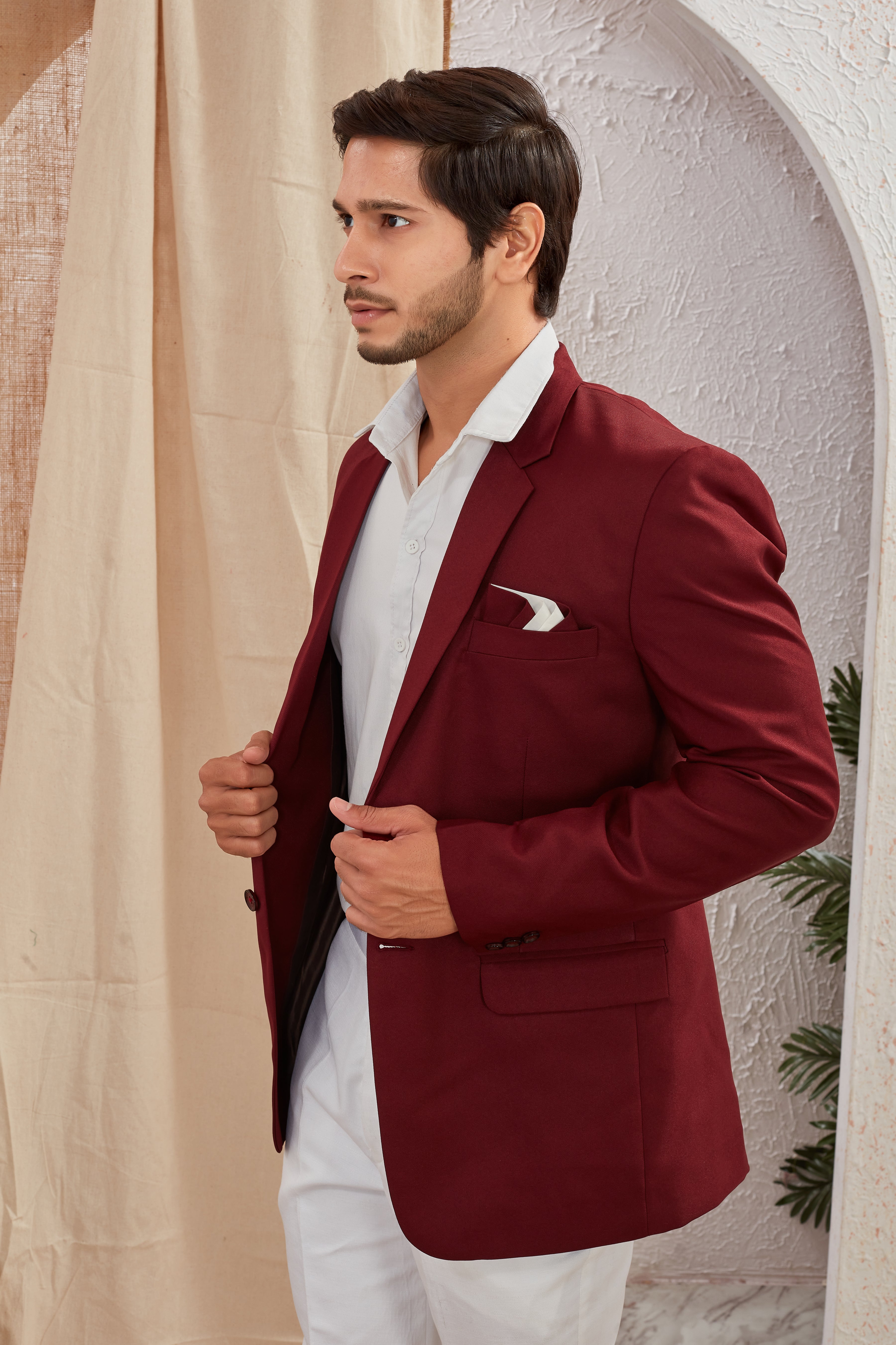 Men's Classic Maroon Formal Blazer – Tailored Fit