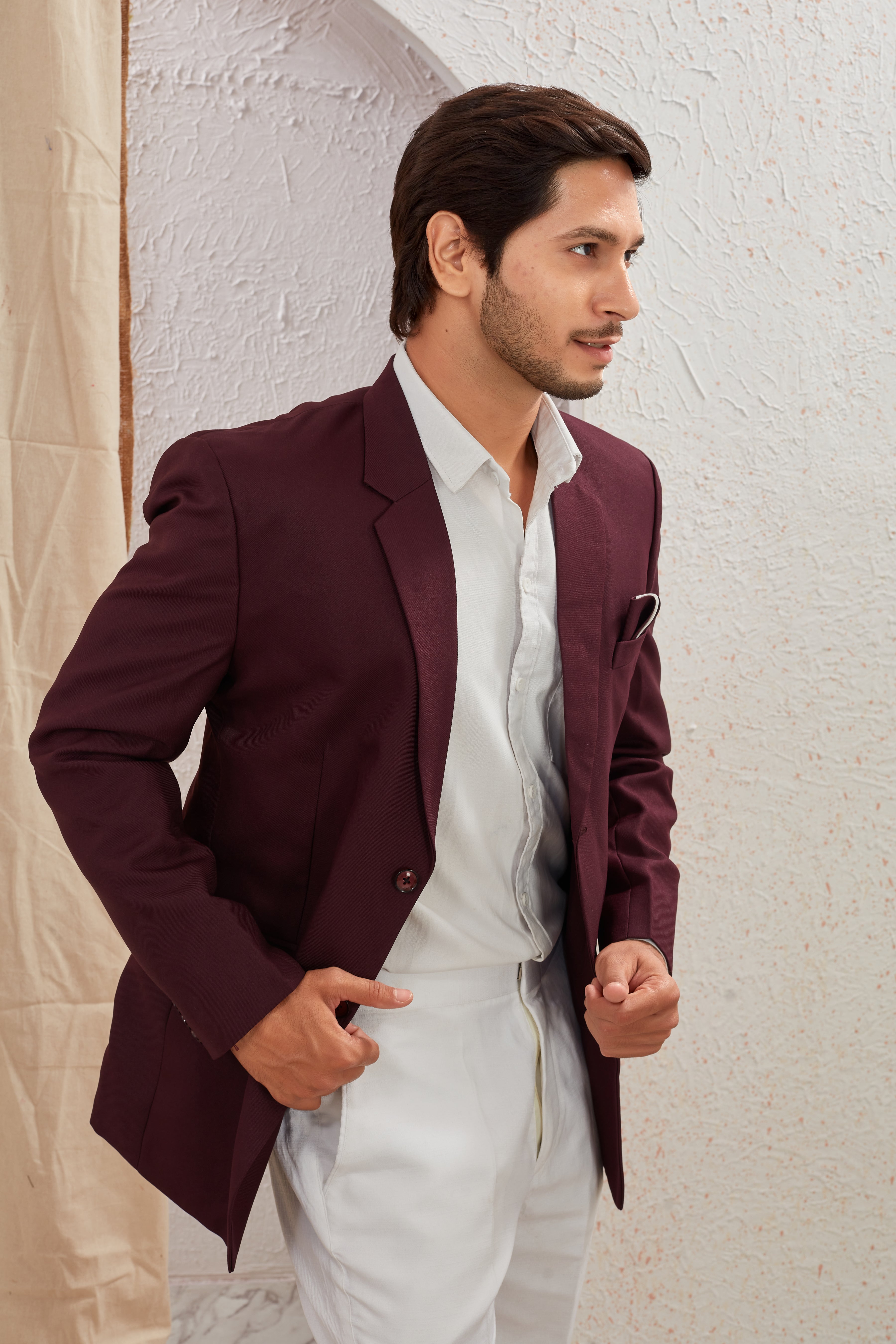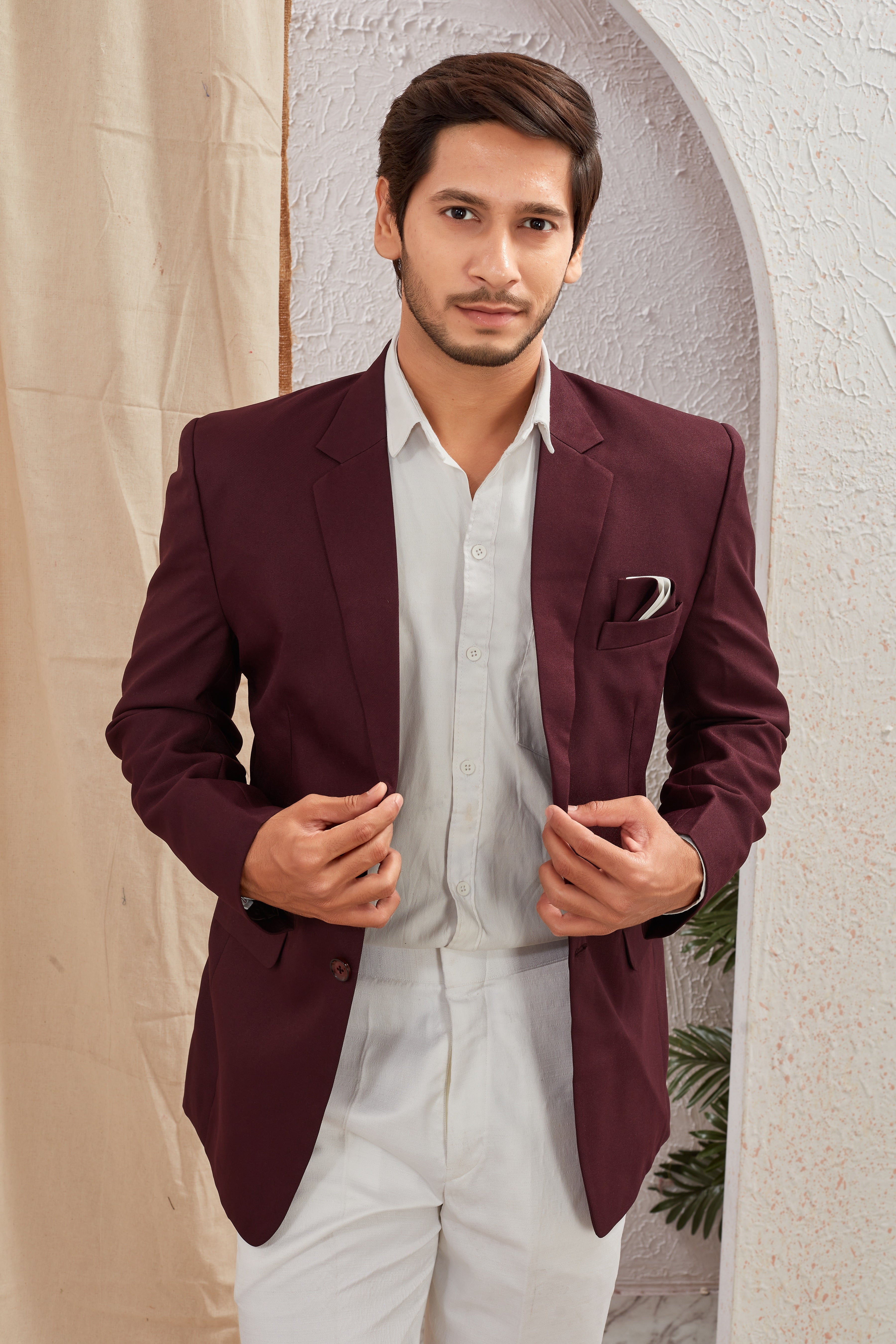 Men's Classic Wine Formal Blazer – Tailored Fit