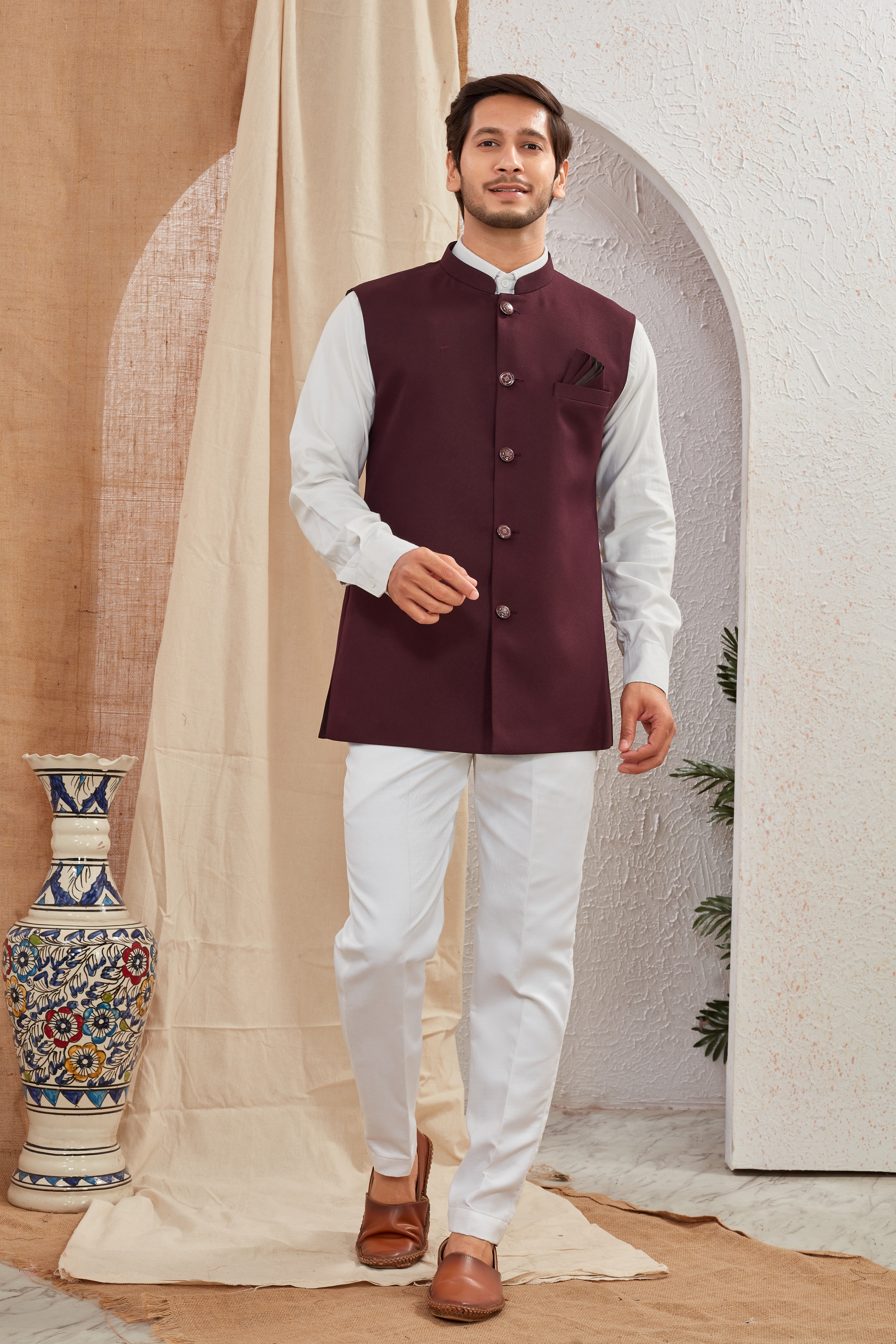 Men's Classic Solid Nehru Jacket – Ethnic Waistcoat for Formal & Festive Wear