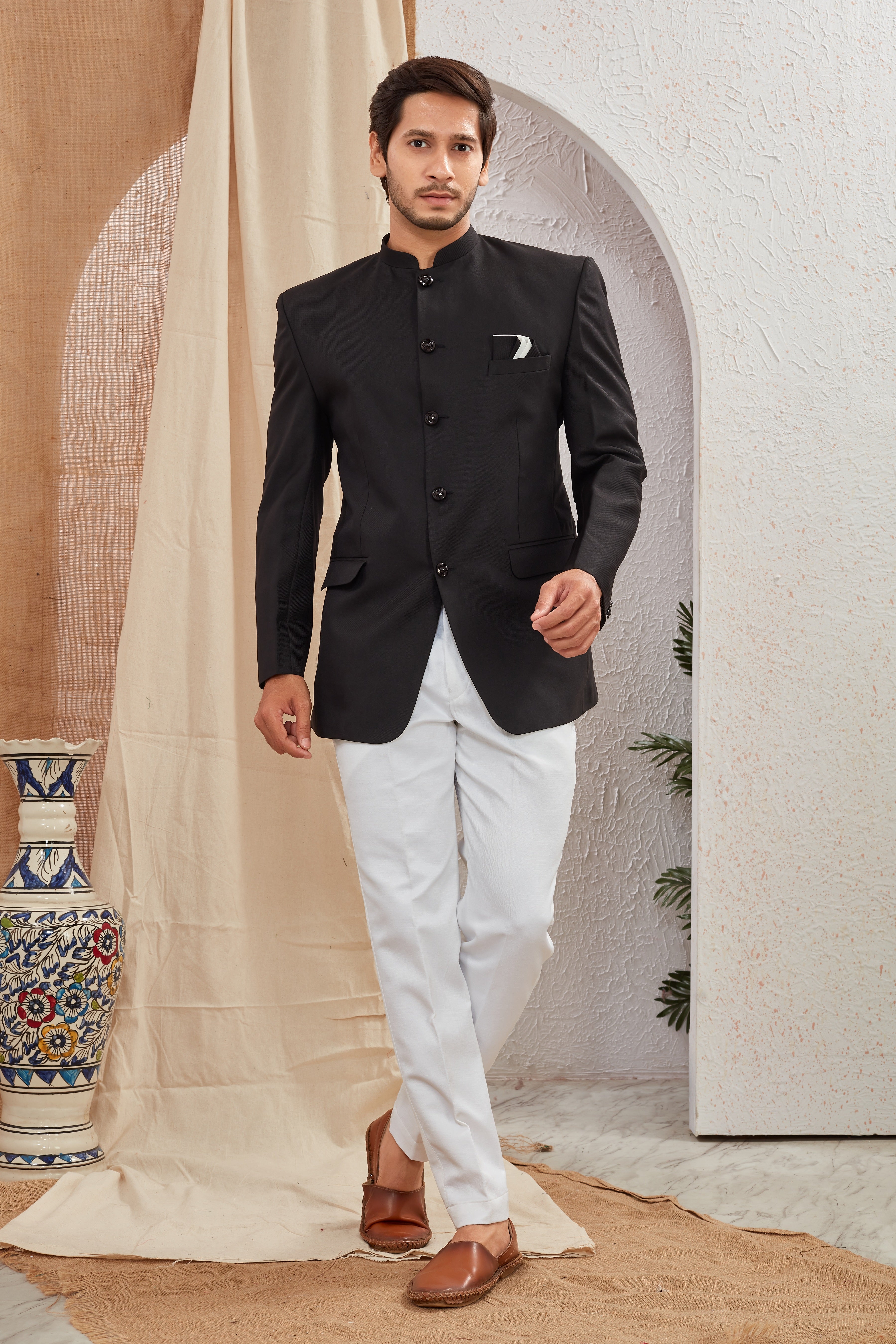 This timeless bandhgala blazer can be styled effortlessly with white trousers or ethnic bottoms. Its structured tailoring and refined detailing make it a must-have for the modern gentleman who appreciates classic Indian elegance with a modern twist.