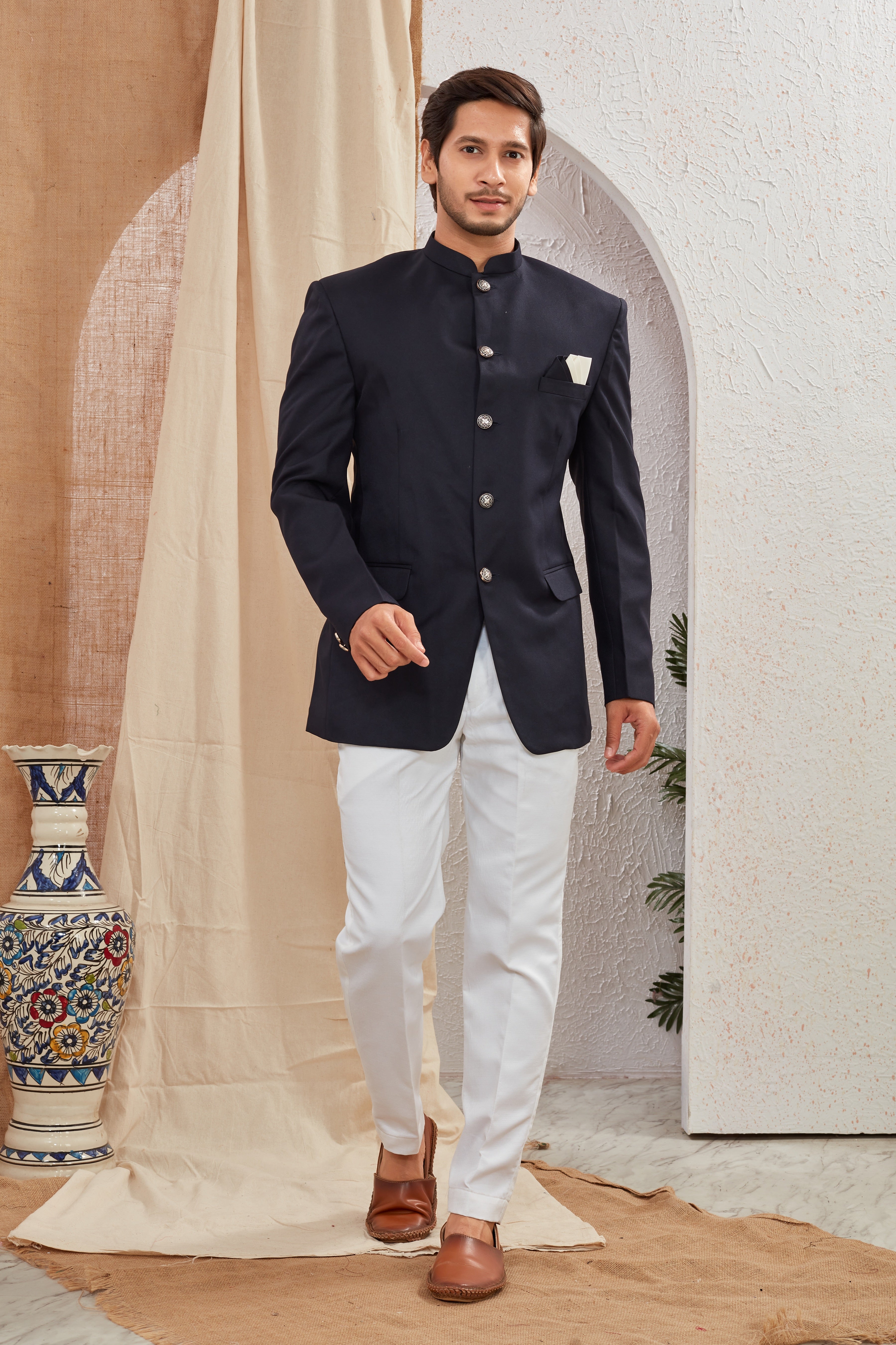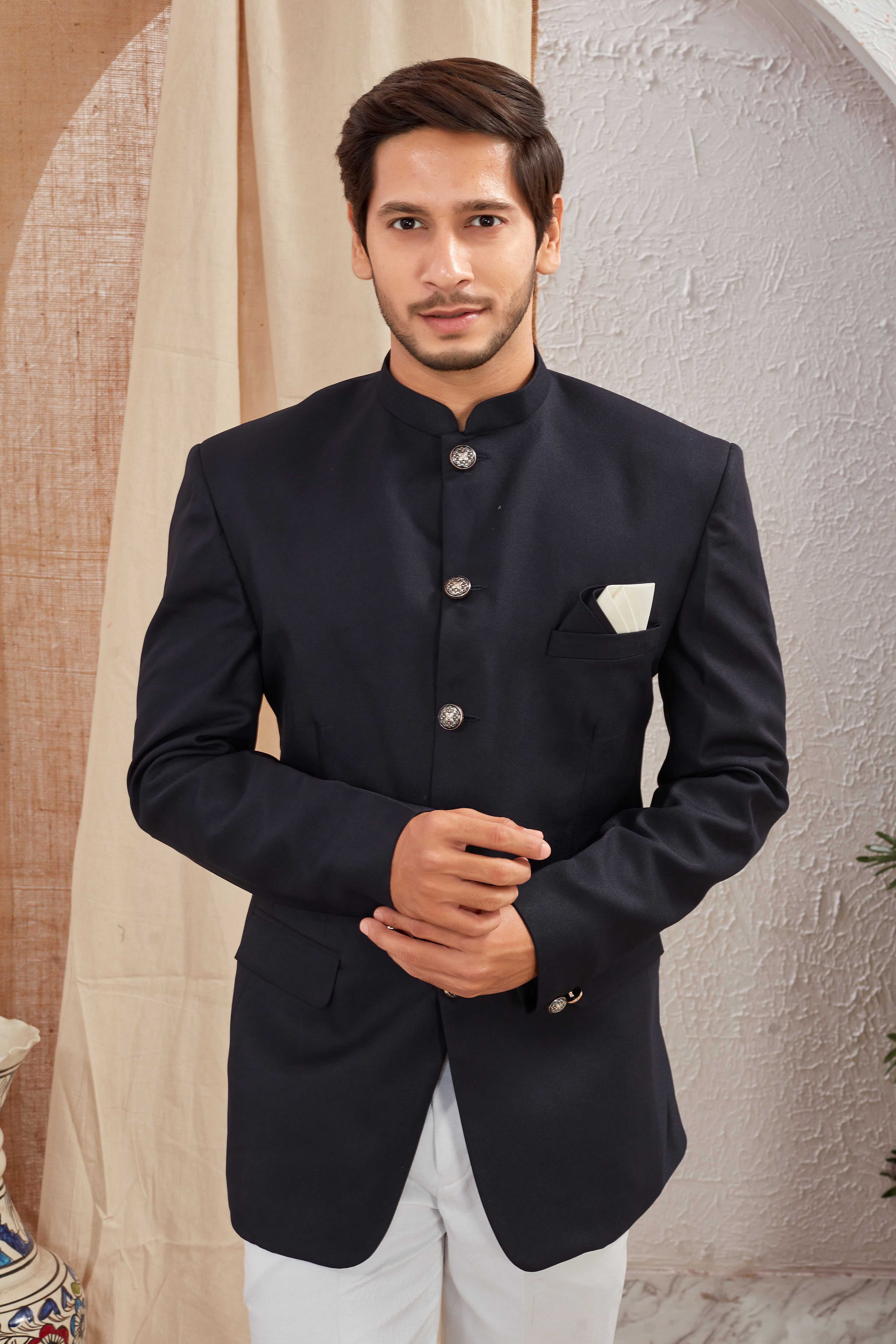 This timeless bandhgala blazer can be styled effortlessly with white trousers or ethnic bottoms. Its structured tailoring and refined detailing make it a must-have for the modern gentleman who appreciates classic Indian elegance with a modern twist.