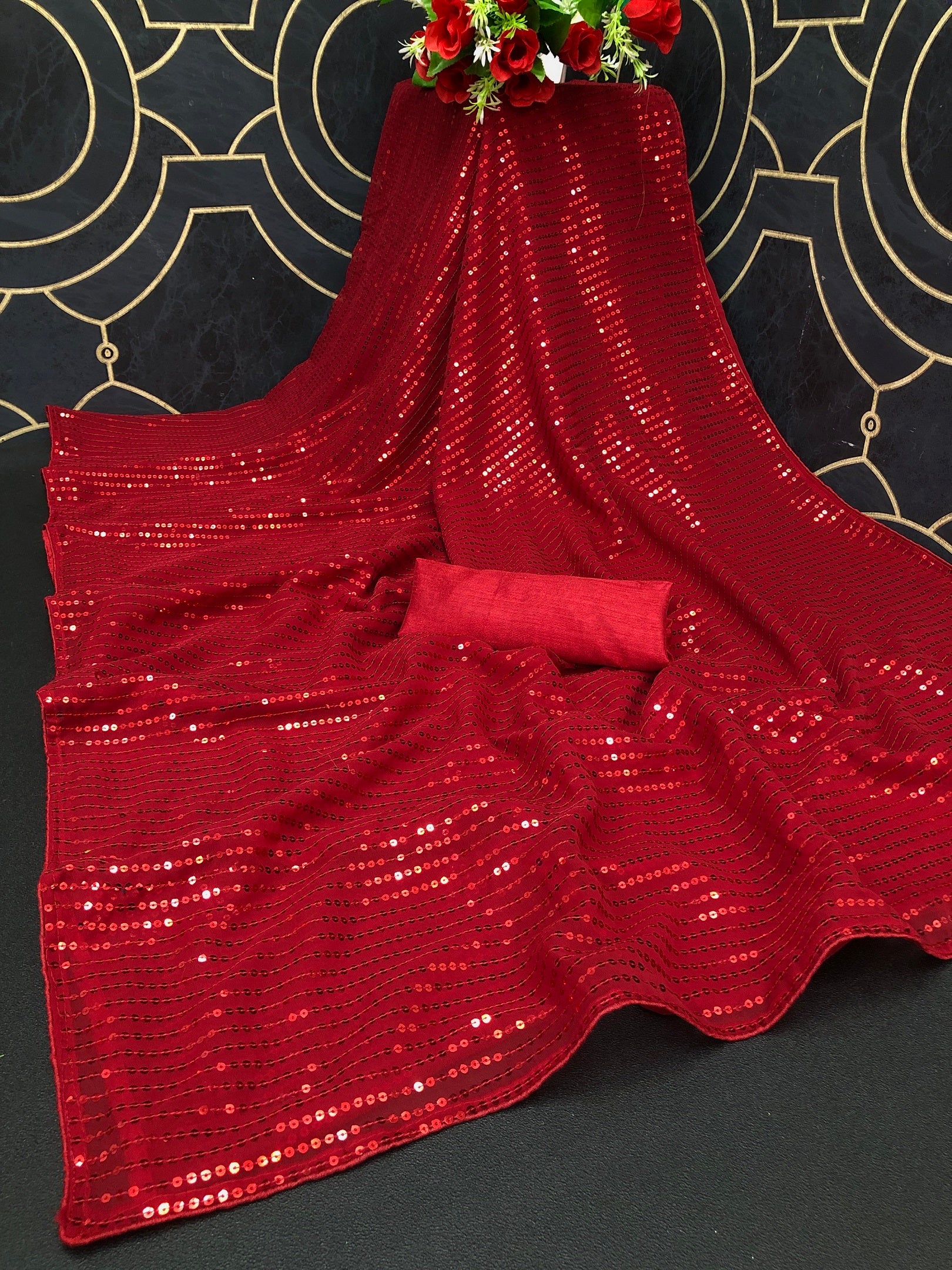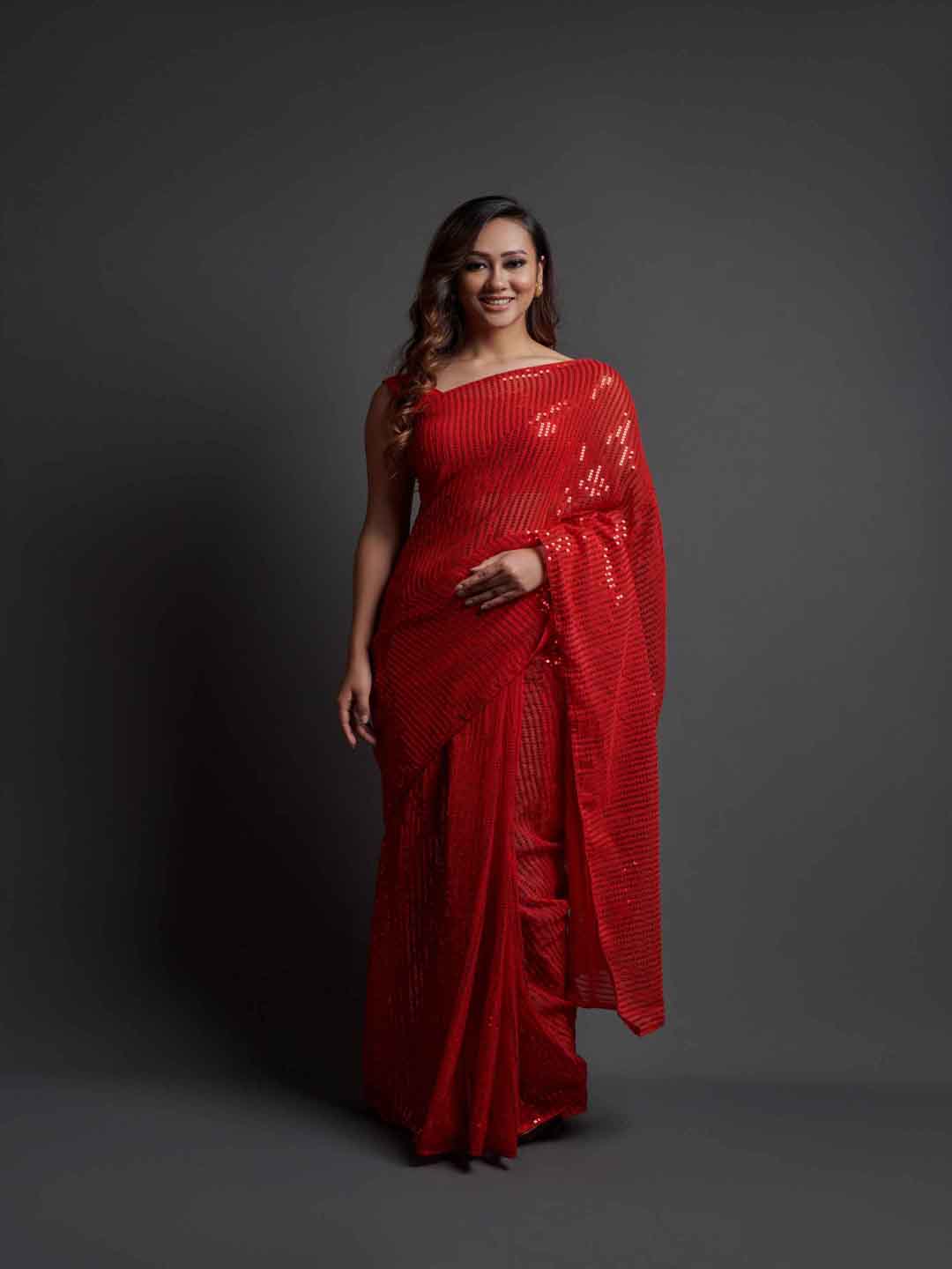 Midnight Noir – Red Vertical Sequin Designer Saree