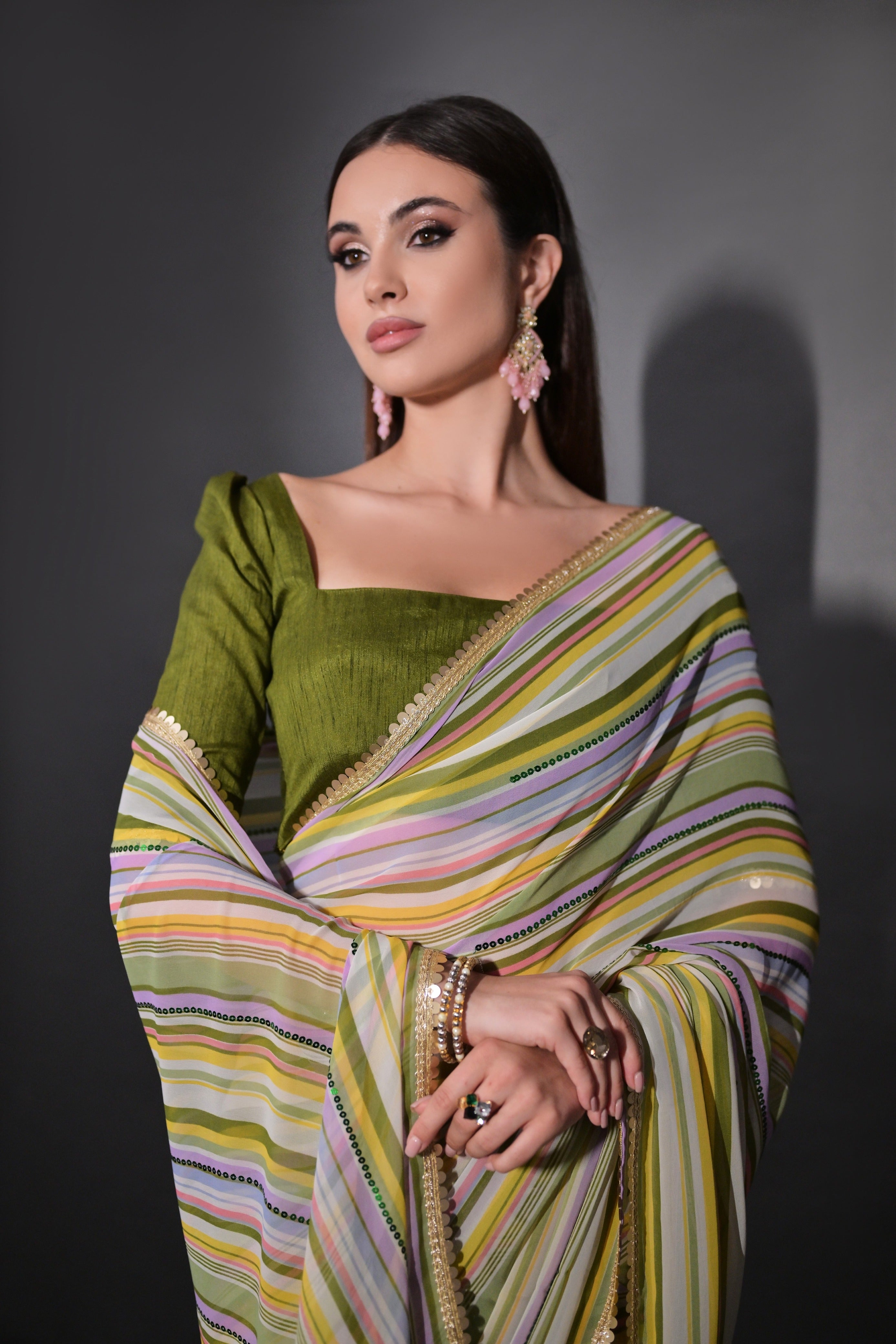 Multicolor Pastel Striped Saree with Subtle Gold Border Elegant Daily & Festive Wear
