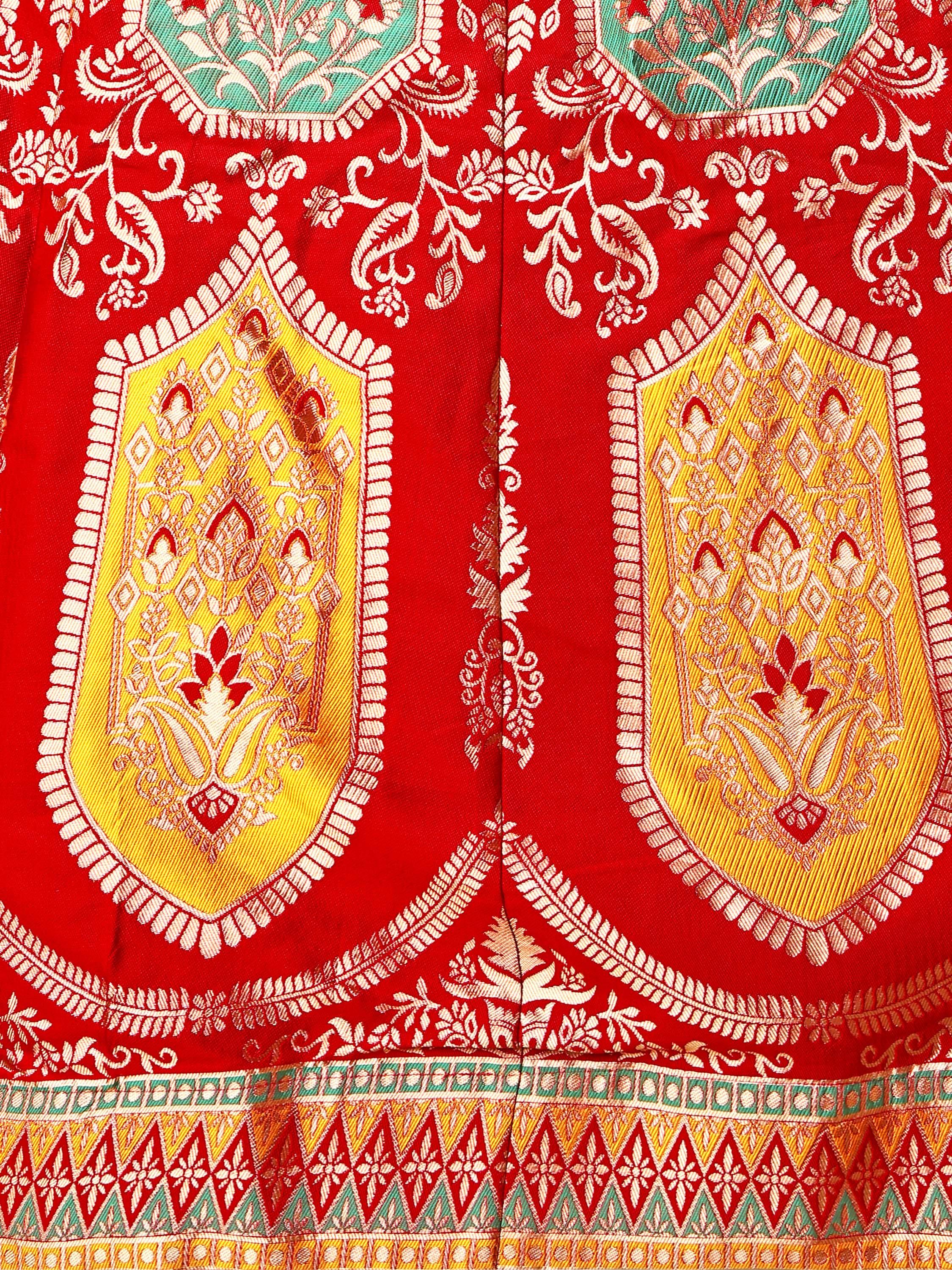 Blouse Color: Red with Gold Brocade Pattern