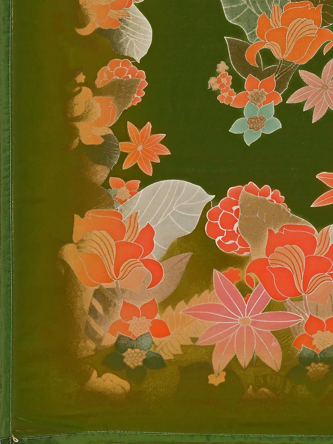 Color: Forest Green with Multicolor Floral Prints