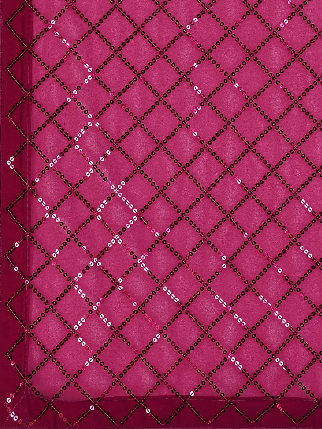 Turn heads with this bold and glamorous Wine Sequin Saree. Crafted on soft Georgette fabric, it features all-over geometric diamond embroidery with delicate sequin detailing that adds the perfect amount of sparkle.