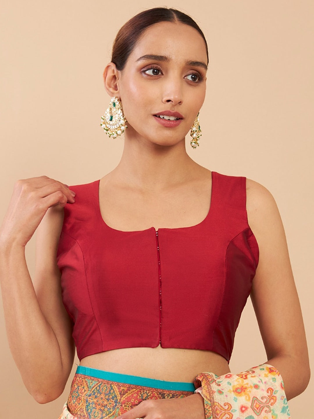 Elevate your ethnic look with this bold and beautiful Solid Sleeveless Blouse, crafted from luxurious Silk fabric. The square neckline and clean silhouette give it a modern yet traditional appeal, perfect for pairing with sarees, lehengas, or fusion skirts.