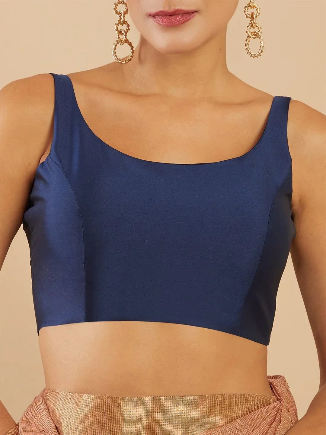 Women's Solid Silk Sleeveless Blouse Top Scoop Neck Ethnic & Party Wear for Saree, Lehenga, Skirt