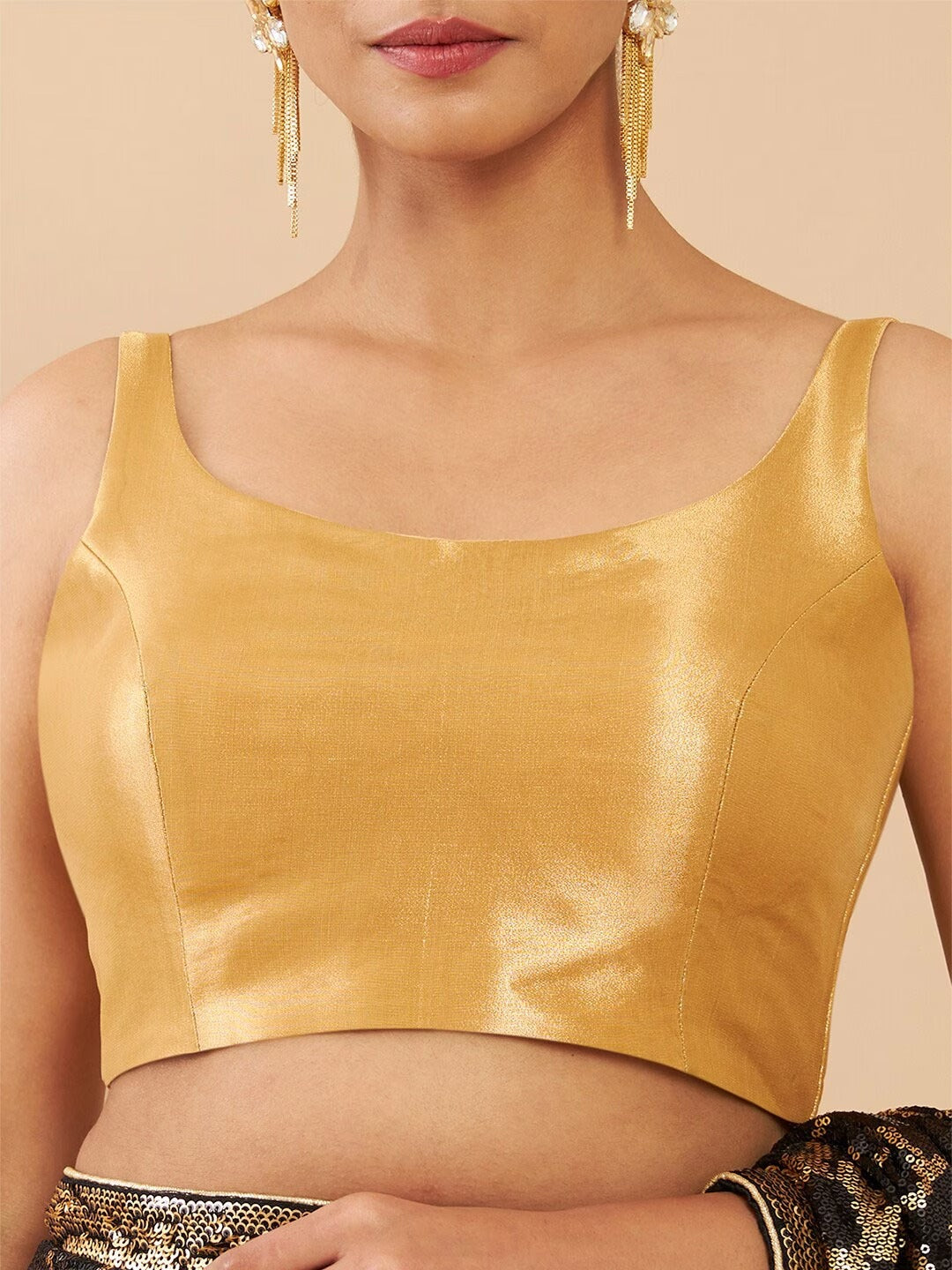 Women's Solid Silk Sleeveless Blouse Top Scoop Neck Ethnic & Party Wear for Saree, Lehenga, Skirt