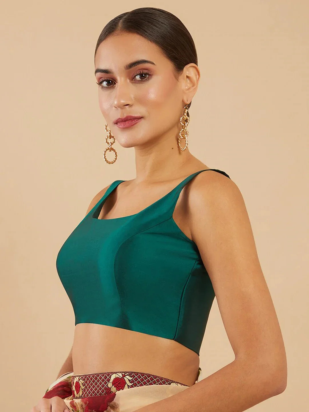 Women's Solid Silk Sleeveless Blouse Top Scoop Neck Ethnic & Party Wear for Saree, Lehenga, Skirt
