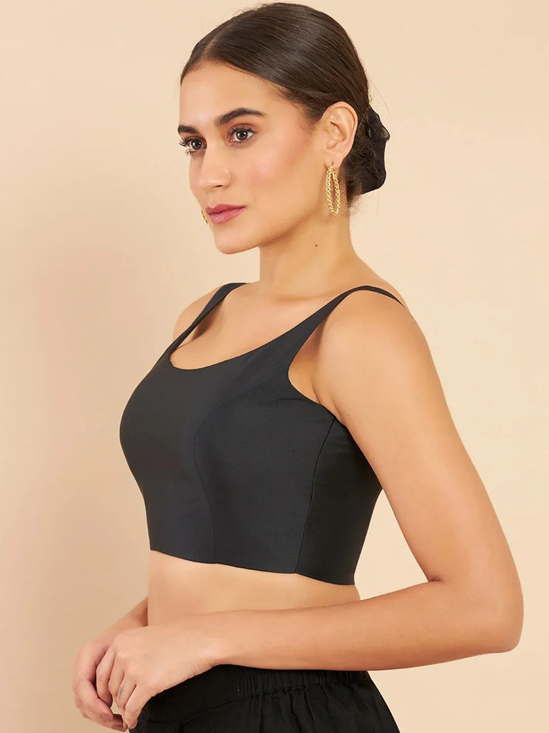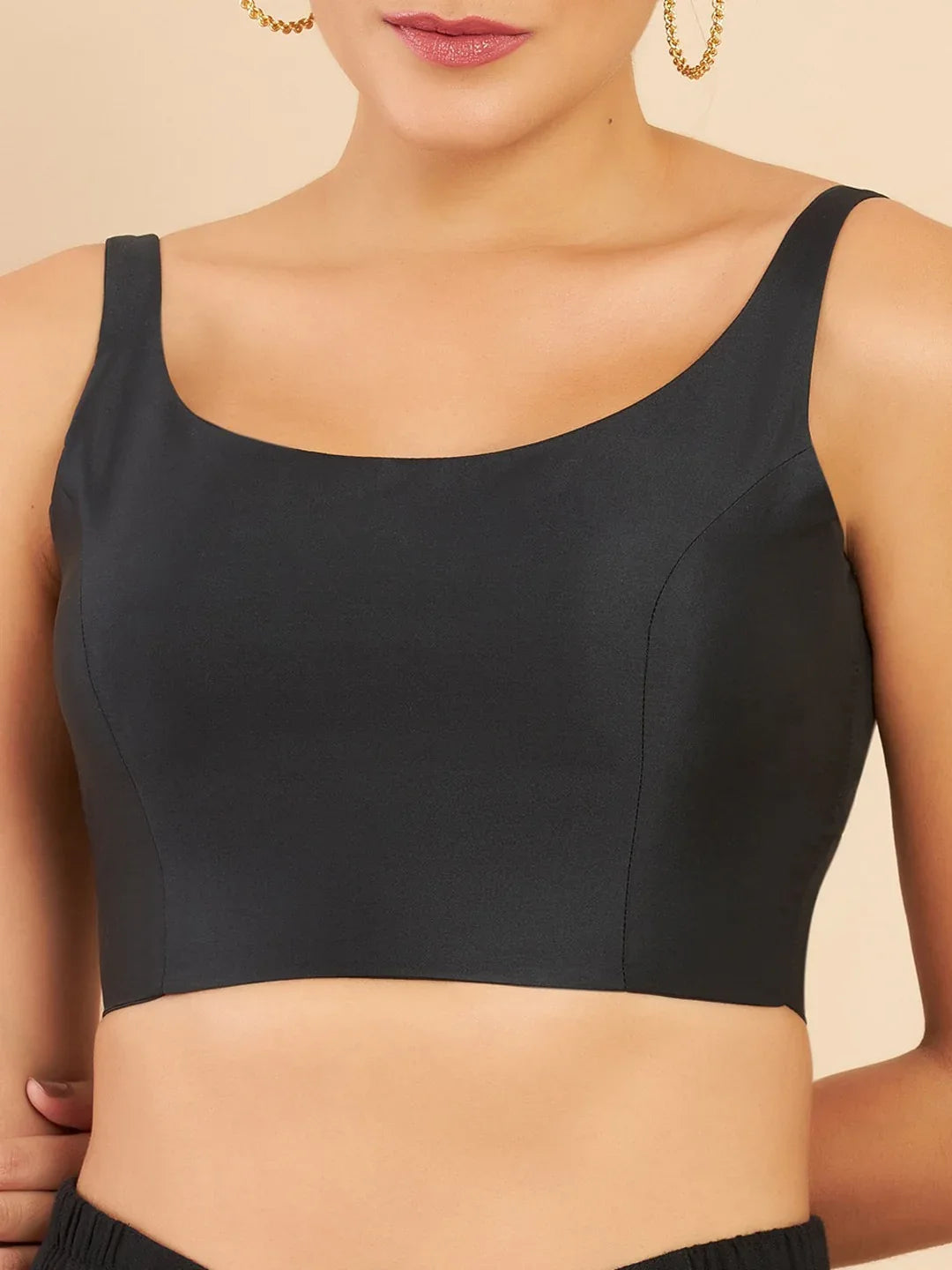 Women's Solid Silk Sleeveless Blouse Top Scoop Neck Ethnic & Party Wear for Saree, Lehenga, Skirt
