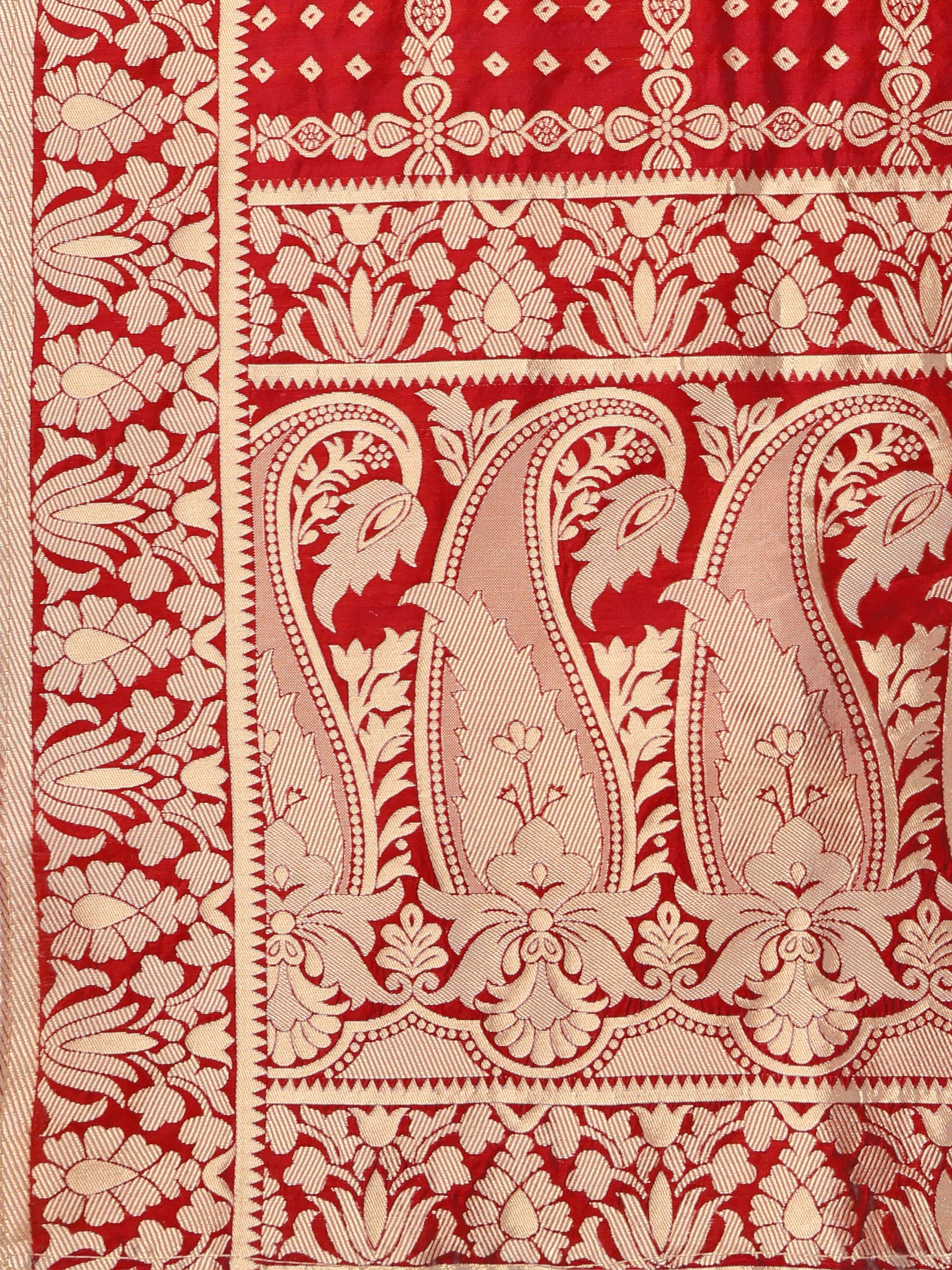 Work: Intricate gold zari weaving with traditional Banarasi motifs